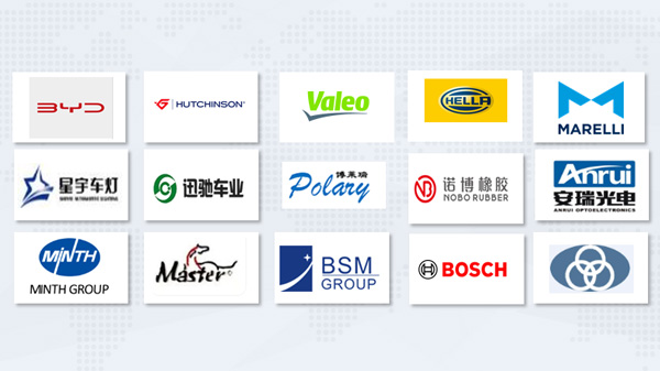 主要客户有:比亚迪,法雷奥,哈金森,小糸,海拉,马瑞利,敏实集团、安瑞光电、常州星宇,浙江天翀等。